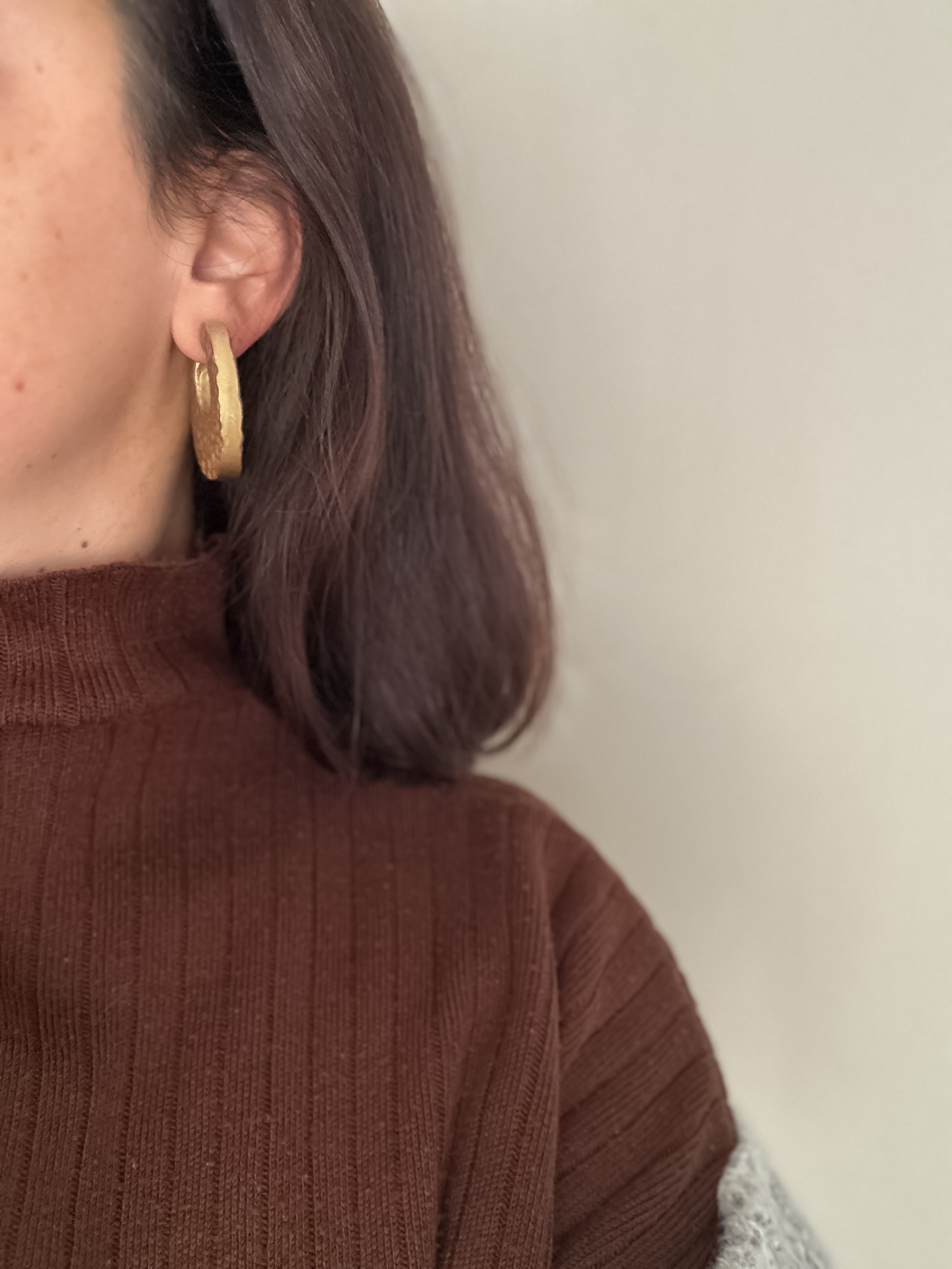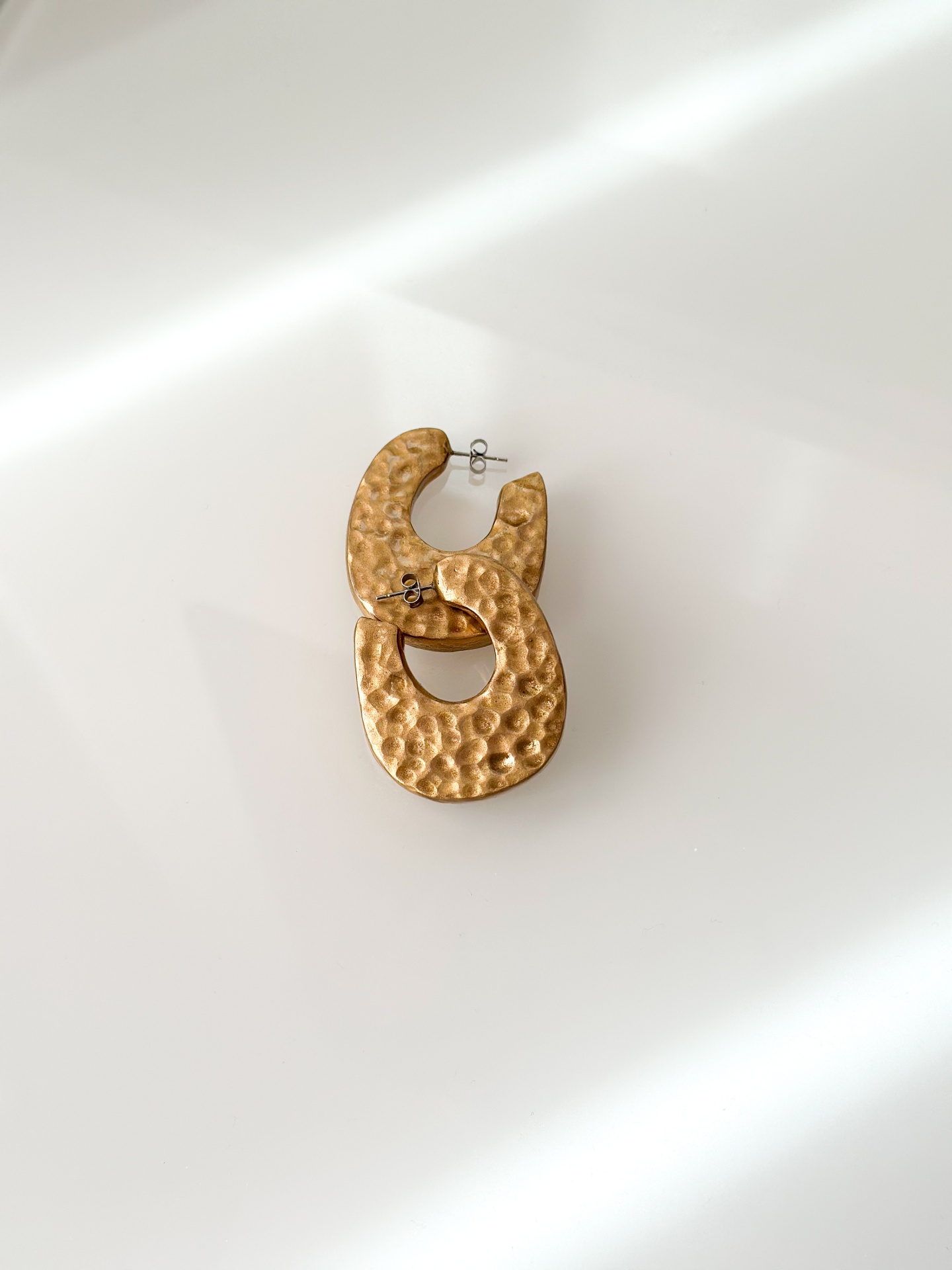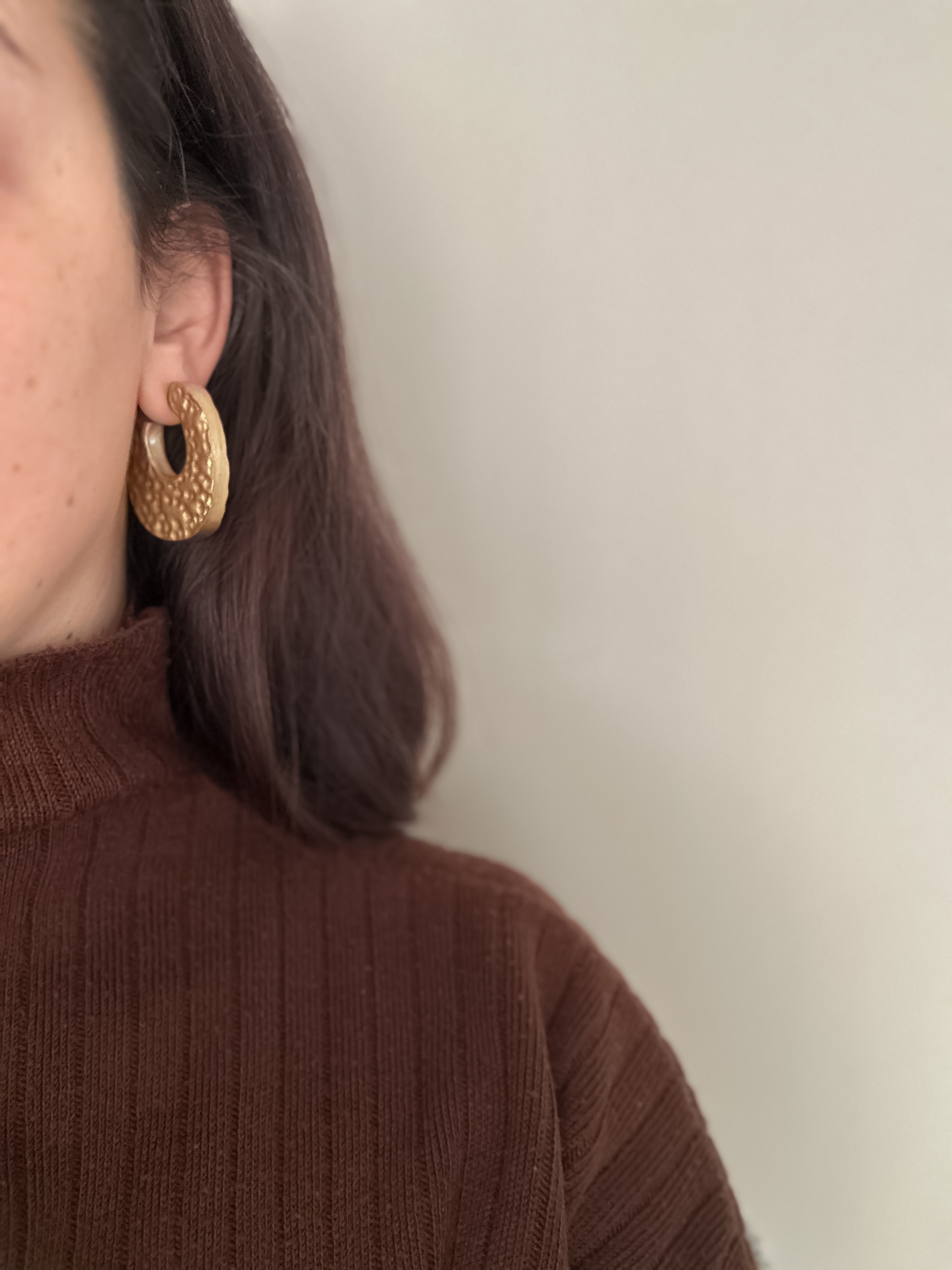Brincos estilo argola, banhados a dourado e brilho.
