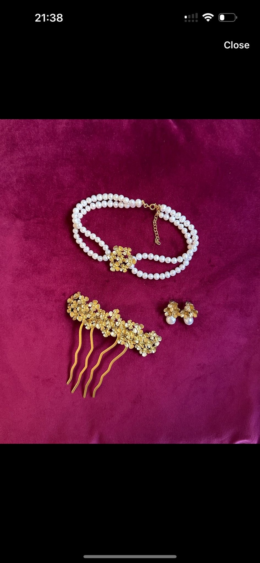 Brincos dourados com flores e pérola de água verdadeira.