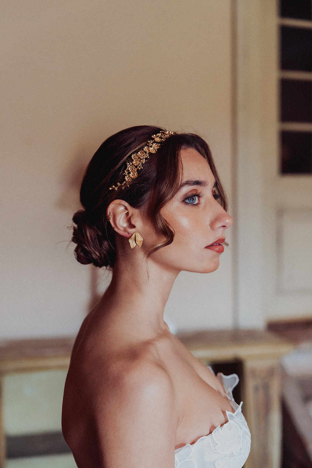 Brinco de folhagem dupla. Disponível para encomenda também em prateado ou branco.