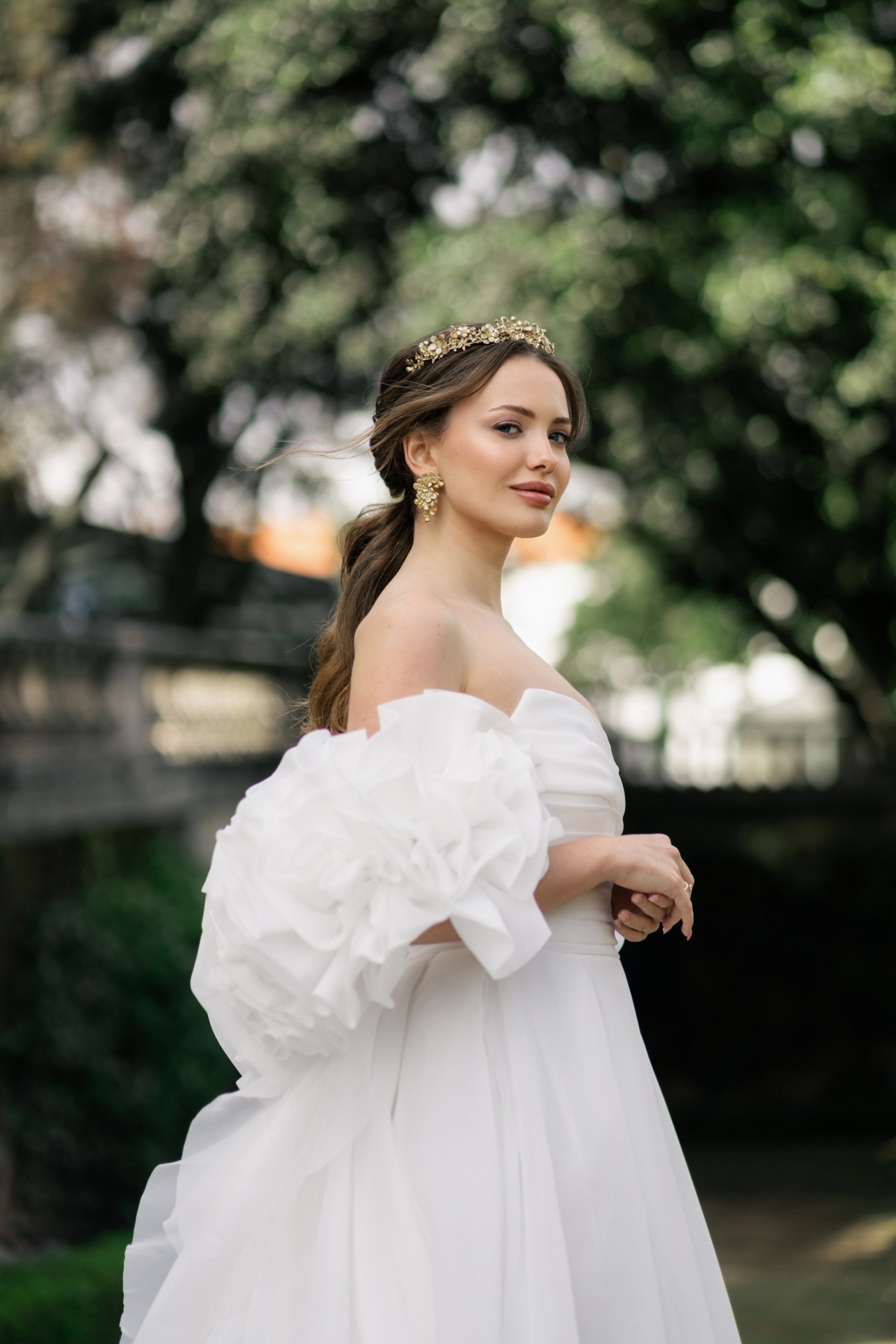 Brincos florais com contorno orgânico. Podem também ser feitos em branco ou prateado.