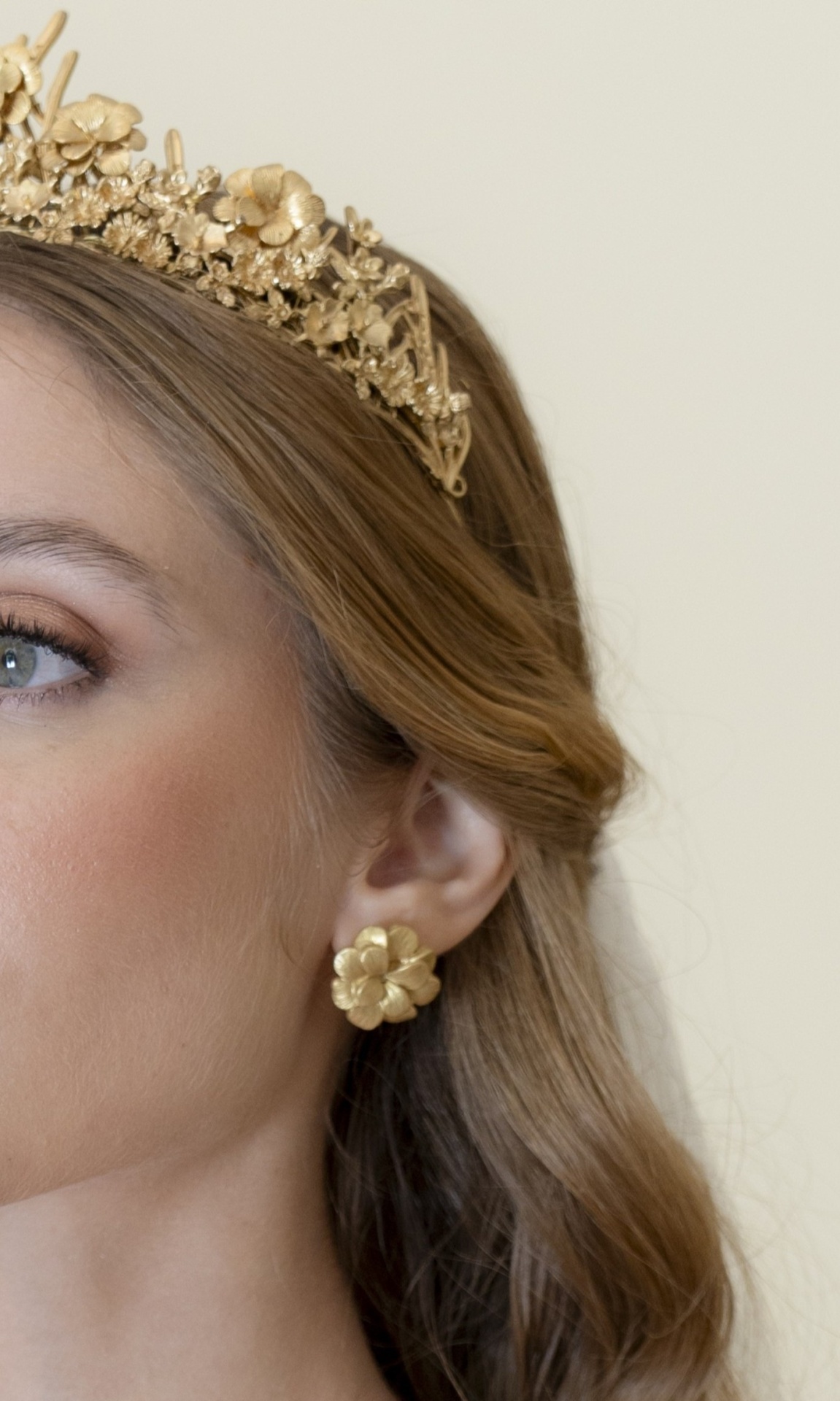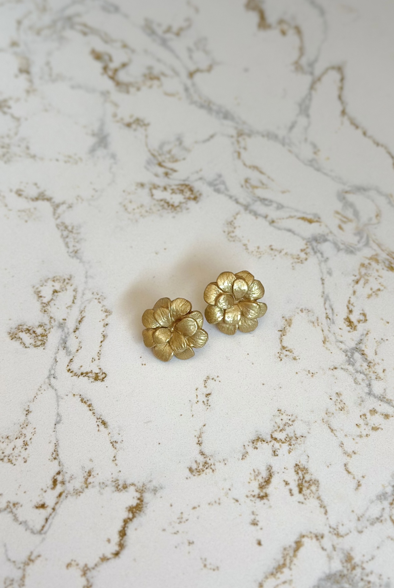 Brincos dourados em forma de flores 2D.