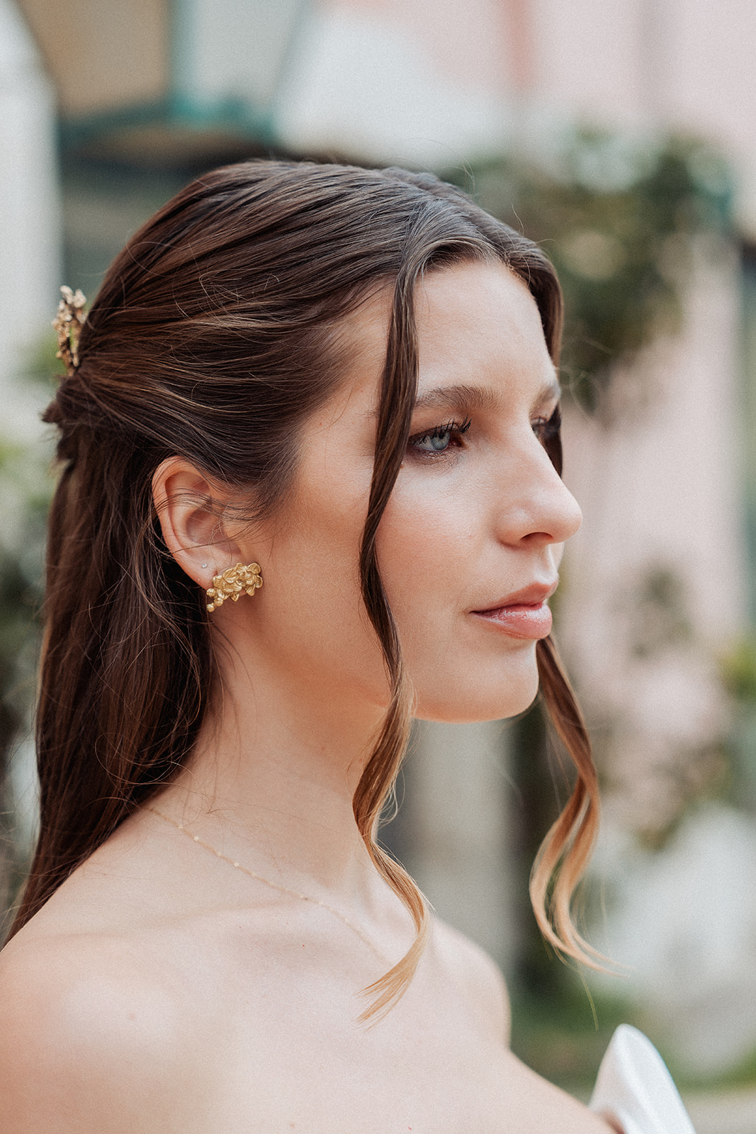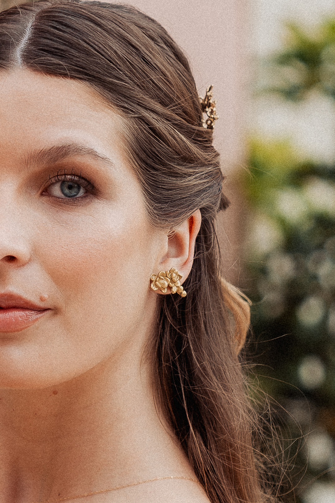 Brinco de estilo lateral. Disponível para encomenda também em prateado ou branco.